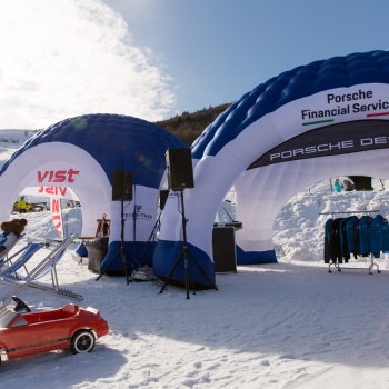 Per presentare i suoi nuovi modelli (e per mostrare i gioielli del suo passato glorioso), La prestigiosa marca di Stoccarda ha scelto i nostri pratici e magnifici stands gonfiabili. L'area hospitality viene allestita al campo base delle più prestigiose stazioni sciistiche italiane e moltissimi sono stati gli sportivi che, approfittando di questa nevosissima stagione invernale, si sono riposati e rifocillati sotto le tende SPORT PROMOTION!.