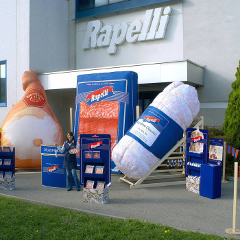 Particolarmente leggeri, semplici da installare e gestire, i gonfiabili pubblicitari prodotti da Sport Promotion sono oggetti di grande impatto visivo durante il giorno ma anche di notte, grazie alla possibilità di dotarli di illuminazione interna.